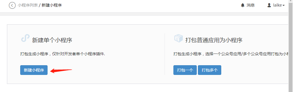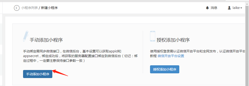 一、登錄店老板后臺 (https://www.dian68.net/web),進入小程序->新建小程序->手動添加小程序->新建小程序。